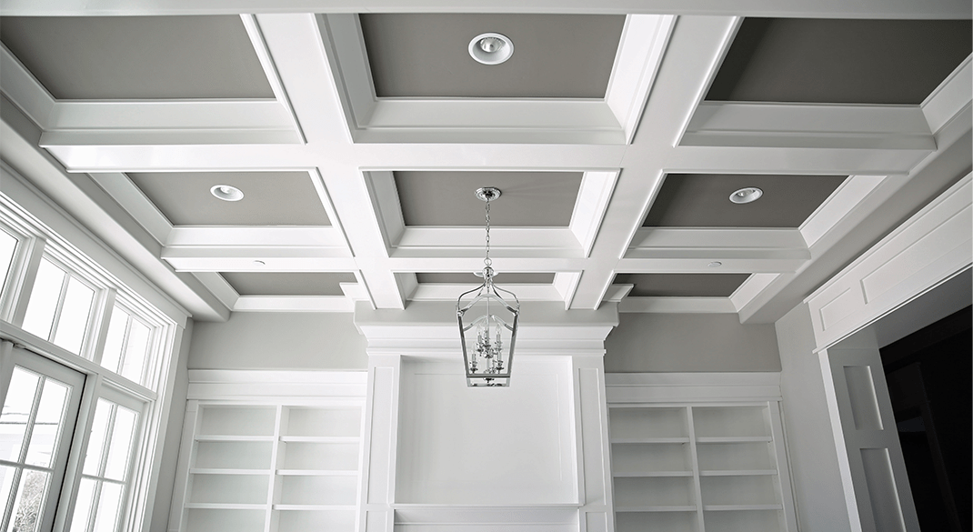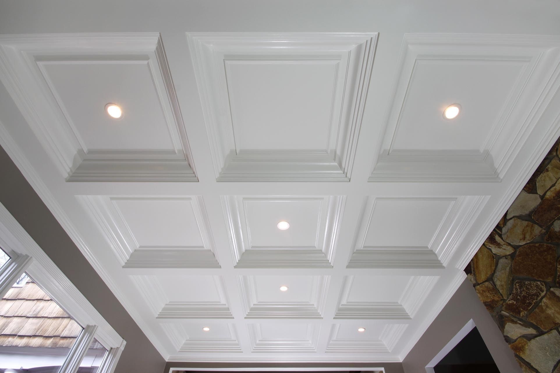 Кессонный потолок — это потолок, состоящий из кессонов - «ячеек». Углубления образуются несколькими перекрещивающимися балками и украшаются витражом, цветными красками, орнаментом, росписью, резьбой, встроенными или подвесными светильниками.